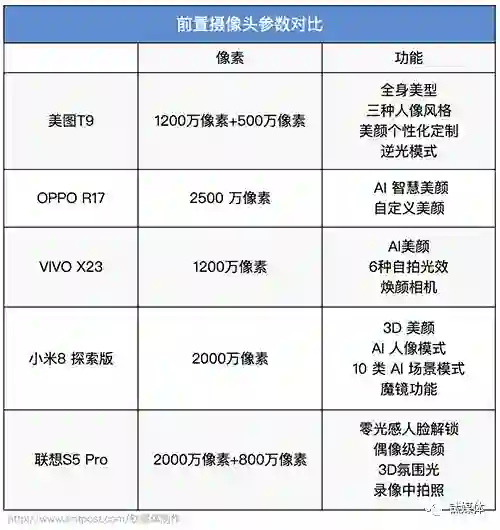 前置摄像头参数对比