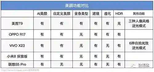 美颜功能对比