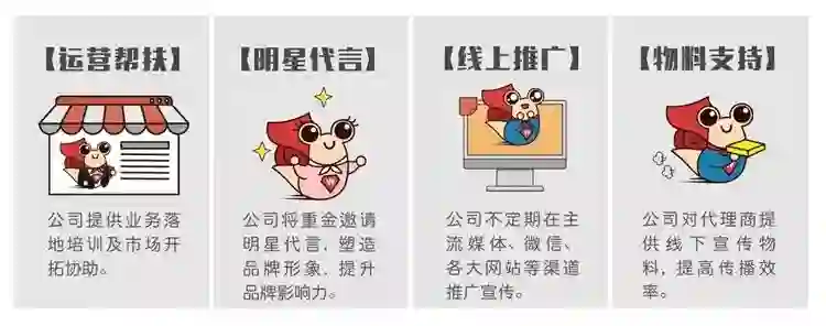 ★运营帮扶+明星代言+线上推广+物料支持,为您的事业保驾护航