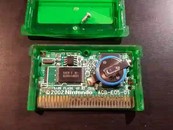 在游戏中按下电源键会触发休眠功能,游戏会自动暂停,再次打开电源时会自动从暂停的时候开始,原理上,这其实就是在给卡带断电之前自动保存一个实时存档,在下一次启动时自动加载,不过从体验的角度,这就和现代数码产品上司空见惯的锁屏功能差不多了。虽然在手机、电脑上锁屏功能已经是一个空气一般常见的设定,不过在游戏主机——尤其是老游戏主机上——实现这个功能没有那么简单。在 GB 系列上,大多数游戏都需要你手动存档,在这个过程中,游戏会把存档的数据写入卡带上用来存储存档的专门的内存芯片上。一些读者可能会记得,早期的 GB 卡带里头会附带一颗纽扣电池,那就是为放置存档文件的 SRAM 内存供电用的,一旦断电,存档数据就会清空。而 GBA 上后期的游戏开始采用 EEPROM 和闪存芯片等方式来存储存档数据,就不再需要电池了,但是由于速度和技术的限制,实时地对游戏进行存档也不是一件容易做到的事情。况且当时的游戏设计也并不一定适合实时存档(例如许多游戏一些比较难的关卡中,你需要在一个妥当的提前存档后反复尝试,这时候如果系统随时随地帮你存档就很难办了)。