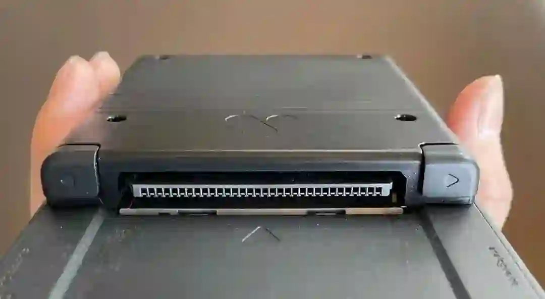 Pocket 卡带插槽的设计有一些非常规,在原版的 GB 系列掌机上,卡带的插槽基本上是可以把卡带完整地「包」在挡板后面的,只露出顶部一截便于取出,而在 Pocket 上,卡槽的挡板只覆盖了卡带底部触点的那一小截,卡带的大部分都暴露在外,这样设计的一大目的显然是为了兼容官方的卡带转换器,随之而来的一个好处是游玩时你也可以看到完整的卡带和卡带上的标签,显然是更美观的,坏处就很显而易见了——这看起来也太不稳了。如此窄的接触面积真的可以妥善地固定卡带吗?