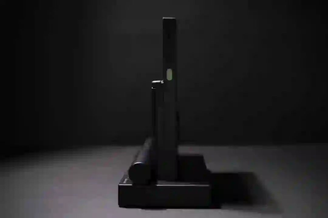 以上谈到的都是 Pocket 「还原原机体验」的部分,接下来是「超越原机体验」的部分。最主要的一个当然是 Pocket 的王牌配件 Dock——售价 99 美元,比 59 美元的 Nintendo Switch 底座还要贵。Dock 的功能和 Switch 的底座一样,就是为 Pocket 增加视频输出,以及支持有线和无线手柄,当然它同时也是一个充电底座。作为一个掌机配件,Dock 的体积出乎意料地大,这一点在它比 Pocket 本体还要大一倍的包装盒上就可以看出端倪,整个 Dock 由金属质地的圆柱形档杆和圆角矩形的塑料底座组成,可能是为了保证竖版的机身能够稳定,底座部分采用了和机身一样的磨砂处理,与同样黑色磨砂的金属档杆的放在一起,肉眼居然很难一眼看出它们的不同质地。