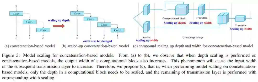 模型缩放的主要目的是调整模型的一些属性,生成不同尺度的模型,以满足不同推理速度的需求。例如,EfficientNet的缩放模型考虑了宽度、深度和分辨率。对于Scale-yolov4,其缩放模型是调整阶段数。Doll‘ar等人分析了卷积和群卷积对参数量和计算量的影响,并据此设计了相应的模型缩放方法。