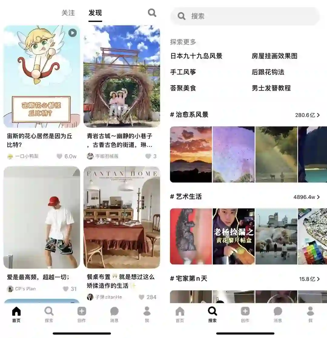 抖音在 iOS 和 Android 平台上线了一个新的社区类应用“可颂”,宣传口号为“定义你的生活力”。可颂的界面设计与小红书类似,底部导航栏分为首页、搜索、创作、消息和个人等。目前,可颂仅支持图文内容创作,不能发布视频。可颂的消息功能与抖音打通,可以查看抖音的朋友私信。目前,可颂还未接入电商、本地生活等购物功能。