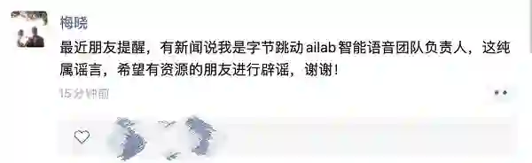 近期有关火山语音的另一个消息是有媒体报道负责人离职,马泽君表示,报道中提到的梅晓系原 AI Lab 语言学专家,主要负责语言学在语音合成技术上的应用。并非 AI Lab 的智能语音部门负责人。