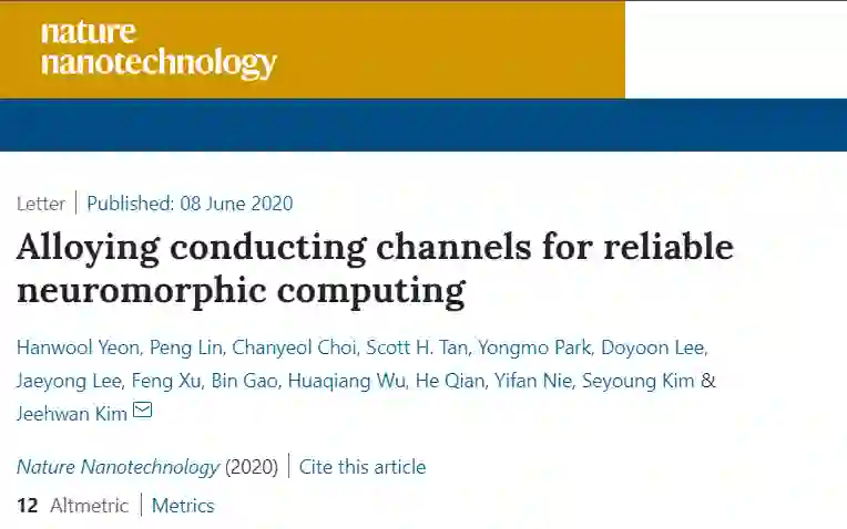 这一研究的论文《Alloying conducting channels for reliable neuromorphic computing》今天已发表在自然杂志子刊《Nature Nanotechnology》上,研究人员展示了一种颇具潜力的新型神经记忆忆阻器设计,其电路以一种模仿大脑神经结构的方式处理信息。更加重要的是,这种脑启发计算方式可以塞进便携设备里,但却能执行今天只有超级计算机才能完成的复杂任务。