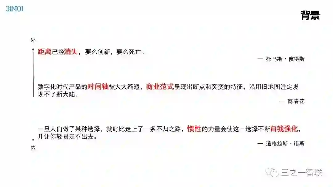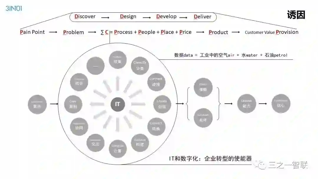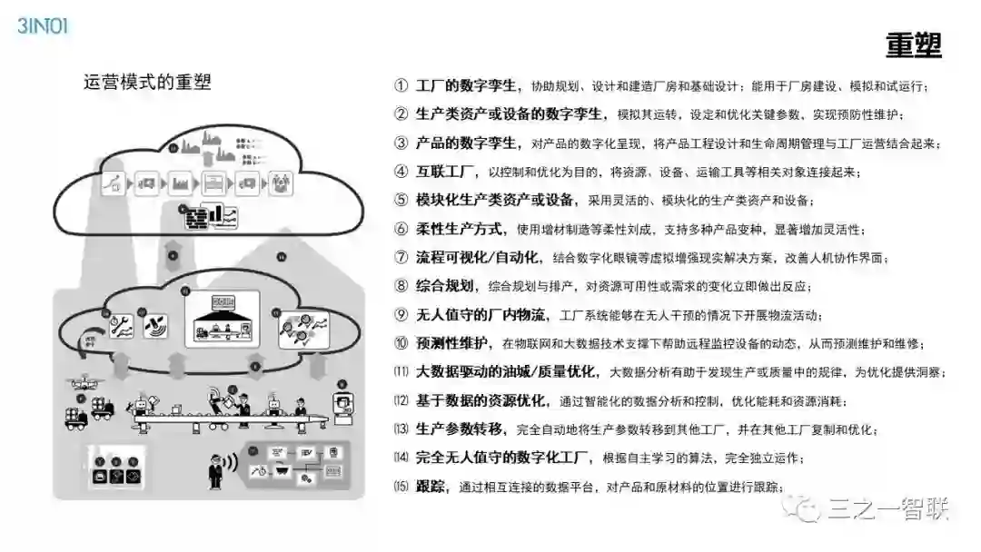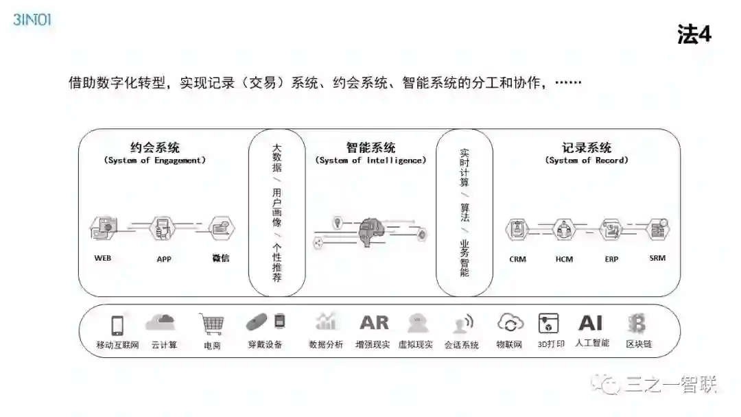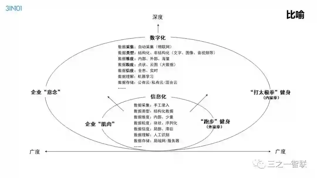 数字化转型已然成为行业热点。前几天,人民日报整版刊登关于加快信息化的文章,是国家层面对信息化价值的高度认可。作为信息化的续篇,数字化,在其目的和核心内容上都有所不同,对企业、社会和个人的影响也更加深远。在发展动能面临转型升级的今天,企业如何借助数字化进行转型,是每一个从业者非常关心的内容。本篇文章是笔者一个讲演稿的图片拼接,从背景、诱因、焦点、目的、内容、路径等方面,对企业数字化转型范式进行了诠释,现刊发出来供读者参考。在后续的文章中,笔者将以文字的形式,对其核心内容进行详细介绍。