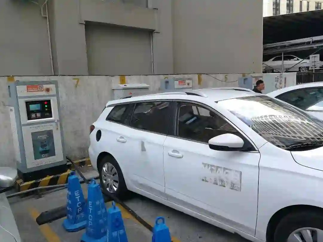 下午16:30,星星充电的快充位停了两部正处于充电状态的汽车,一位司机是美团打车的网约车司机,驾驶的纯电动车续航里程只有180公里,一天要充两次。