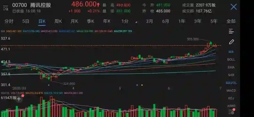 6月23日、6月24日,腾讯股价连续上涨,并突破500港元,总市值超过了阿里巴巴,重回中国最大互联网公司宝座。