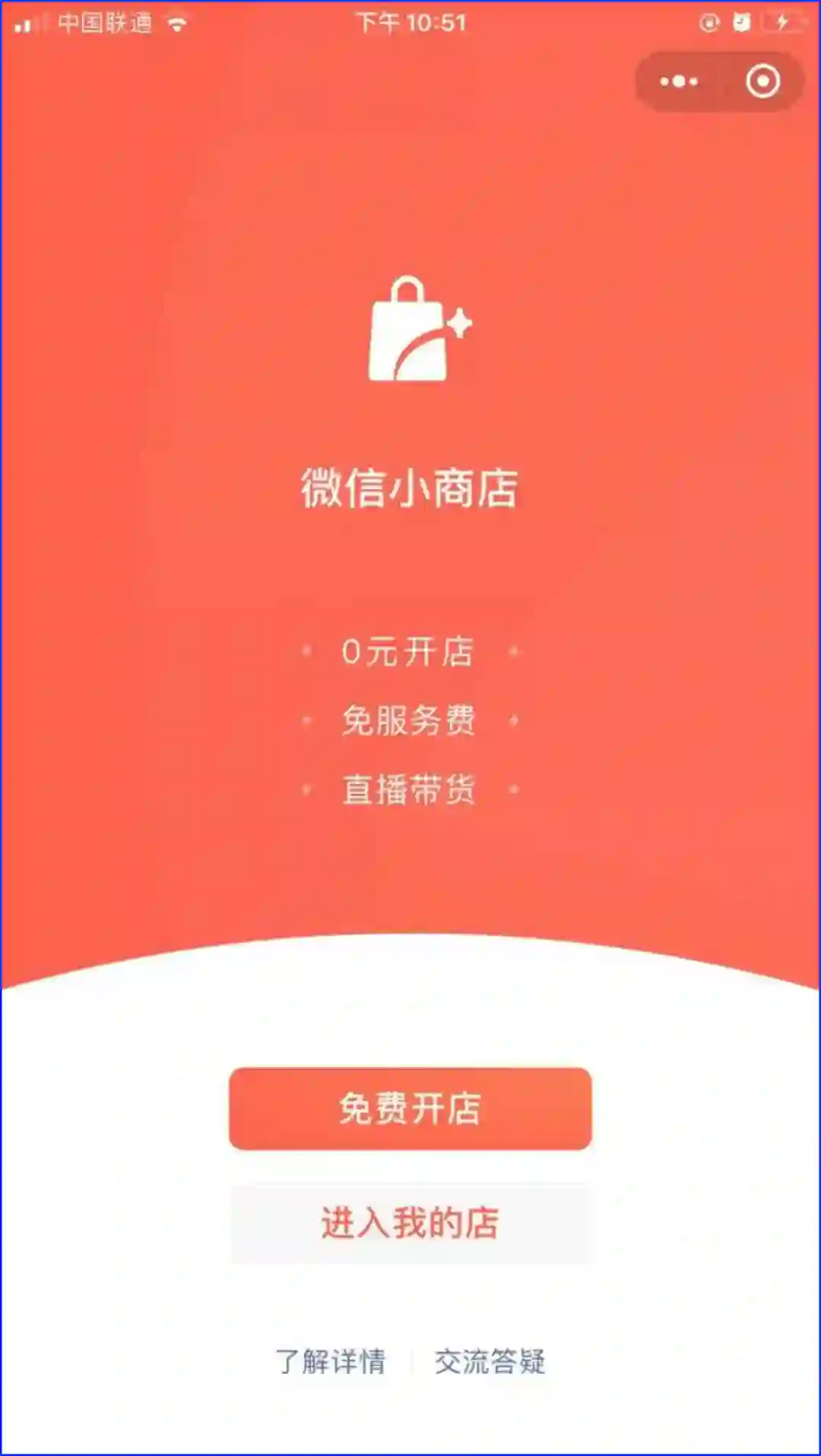按照官方的说法,微信小商店是小程序团队全新打造的一个快速建店工具,无需开发即可一键开通一个卖货小程序,可免服务费,店主还能直播带货。