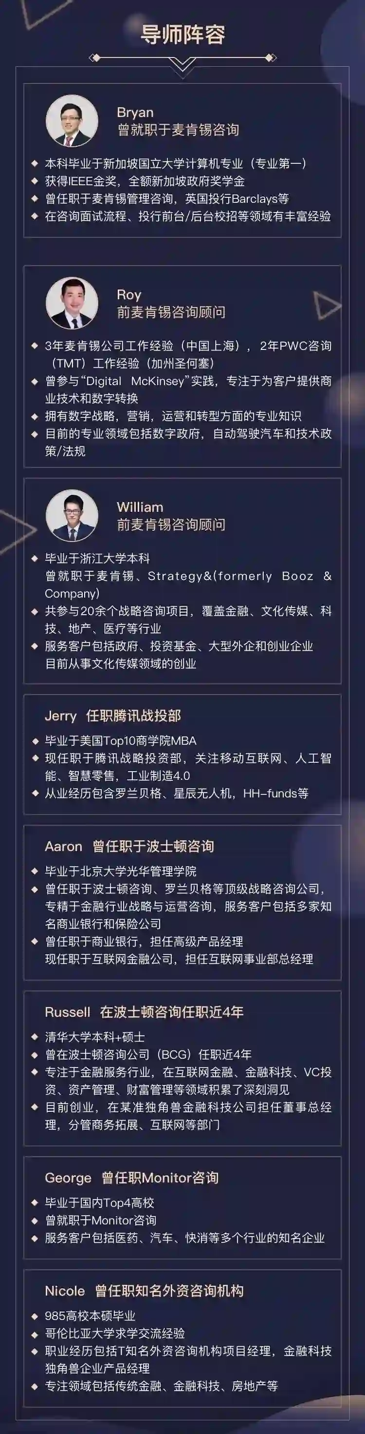 2. 三位前麦肯锡人领衔授课的顶尖导师阵容
