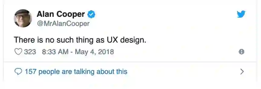 如今它偏离本来的意义越来越远,以至于Alan Cooper先生说:根本没有用户体验设计这回事。