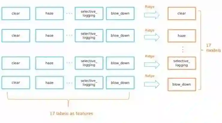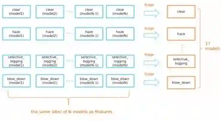换言之,为了预测晴朗这个标签的最终概率(利用resnet-101模型),有一个特殊的晴朗岭回归模型会接收resnet-101模型对所有17个标签的预测情况。