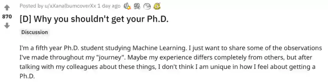 是否读博、读博有多难是个经久不衰的话题。最近,一个 reddit 热帖再次点燃了大家的讨(tu)论(cao)热情。