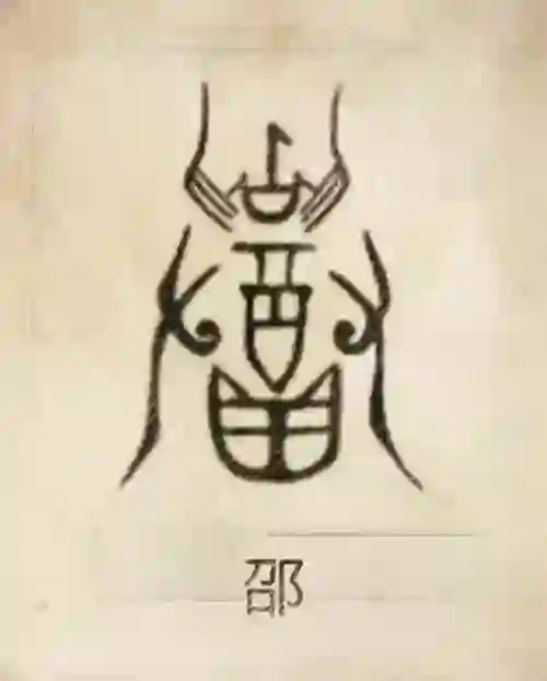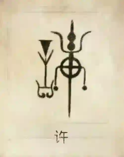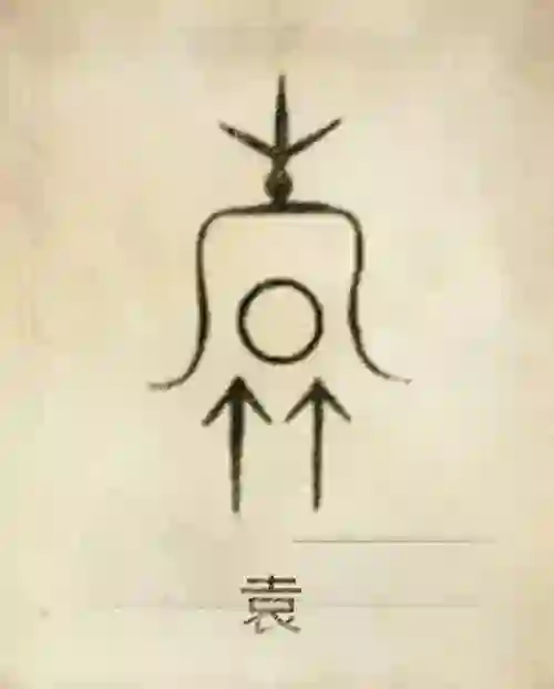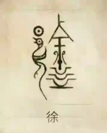 徐姓图腾,徐是淮夷一支的族称,由“余”和“太阳鸟”组成。(左边是玄鸟向日,暗合徐氏始祖由鸟所生的传说。)