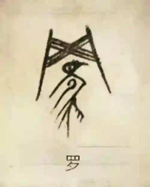 句芒的图腾像是白色四方方面鸟身(因为以重仪确定了天地四方方位),网下的鸟代表句芒。所以罗姓图腾由一张网和鸟组成。