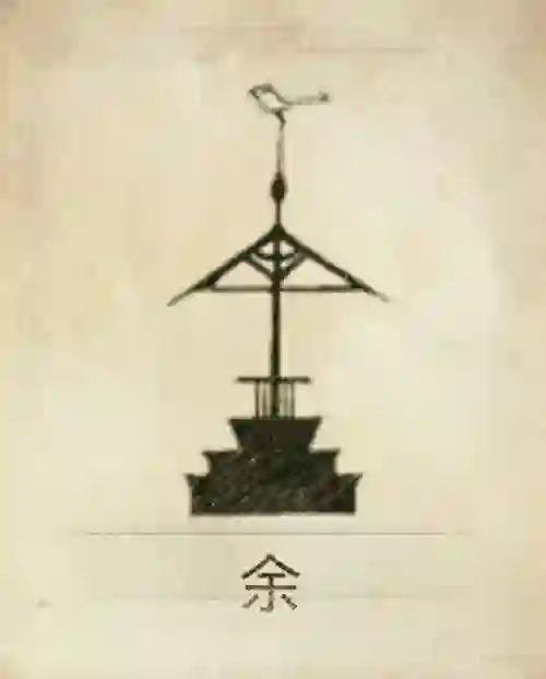 “余”本是“俞”,类似箭矢的尖锋,它装在天竿华表建木的顶端,指向中天,用它来代表“天齐”(天的肚脐),也就是“中央”。