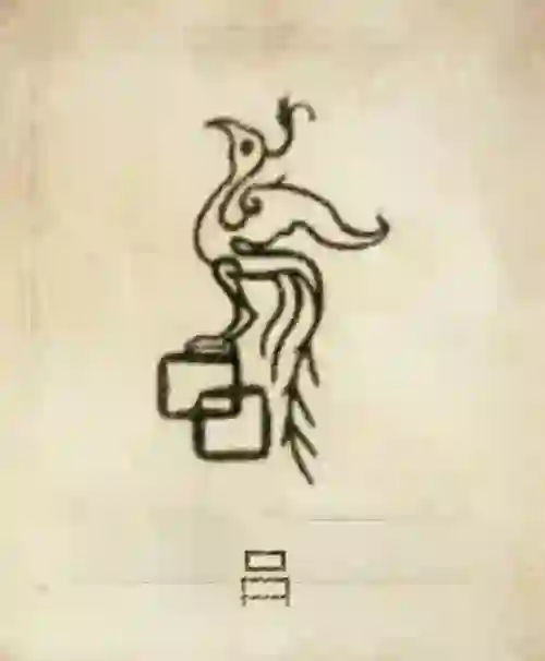 吕由两个“口”组成,代表宫殿基址的平面图,上面的凤鸟代表炎帝氏大阳火鸟图腾。