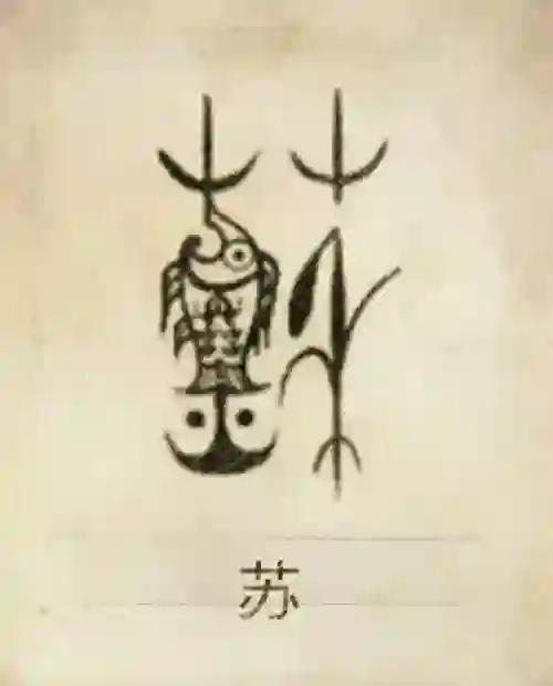 苏姓图腾,苏姓是炎帝族彤鱼氏族祢,祝融八姓之一,由禾、苗、鱼、火组成。