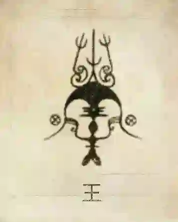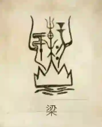 梁姓图腾,梁姓是大山槫木纪历图腾由水、刃、木(槫木)组成,以刀(辛)刻木为纪历方法。