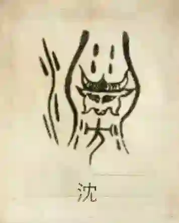 沈姓图腾,沈姓是以牛为图腾的氏族用牛沉河、渊、祭天求雨的巫觋职司,作为族徽,所以由水、渊、牛、方构成。