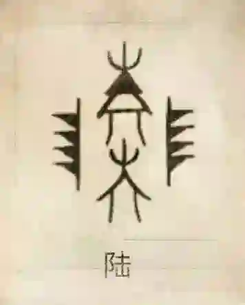 陆姓图腾,以危屋华盖重屋(中)和日月升降符号“非”组成(左右)。