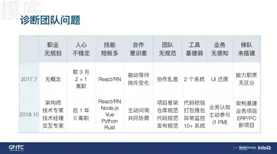 人心不稳定,我去的时候团队陆续走了 3 个前端,在我没去之前,团队的上半年走了更多的前端,这个问题其实是一直存在的,我也才弄清楚并不仅仅是我的空降导致了团队异动,而是这个团队的稳定性问题始终都存在,需要挖出背后的原因。