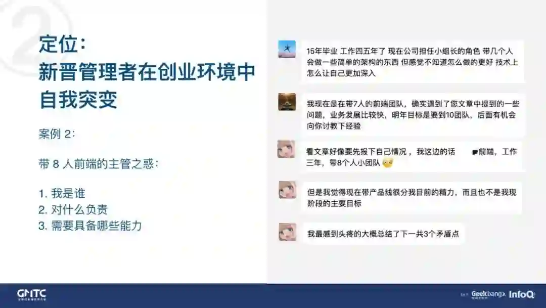 刚才聊的是从管理者的视角看他面临的问题,再切换到管理者下面同学的视角来,会发现同样是挑战: