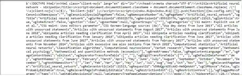 page = urllib.request.urlopen("https://en.wikipedia.org/wiki/Artificial_neural_network").read()
