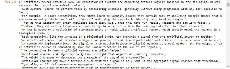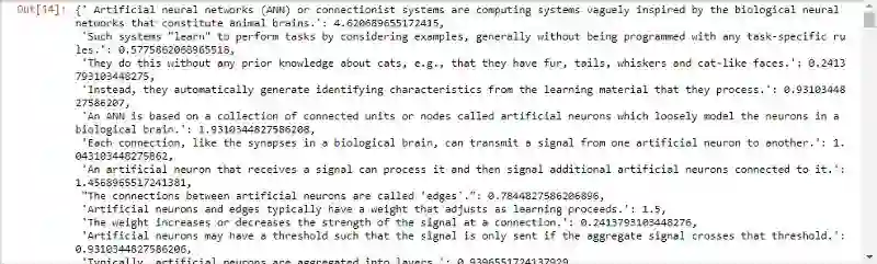 我利用heapq包来找出了7个最适合的句子来作为维基的这篇ANN文章的摘要。