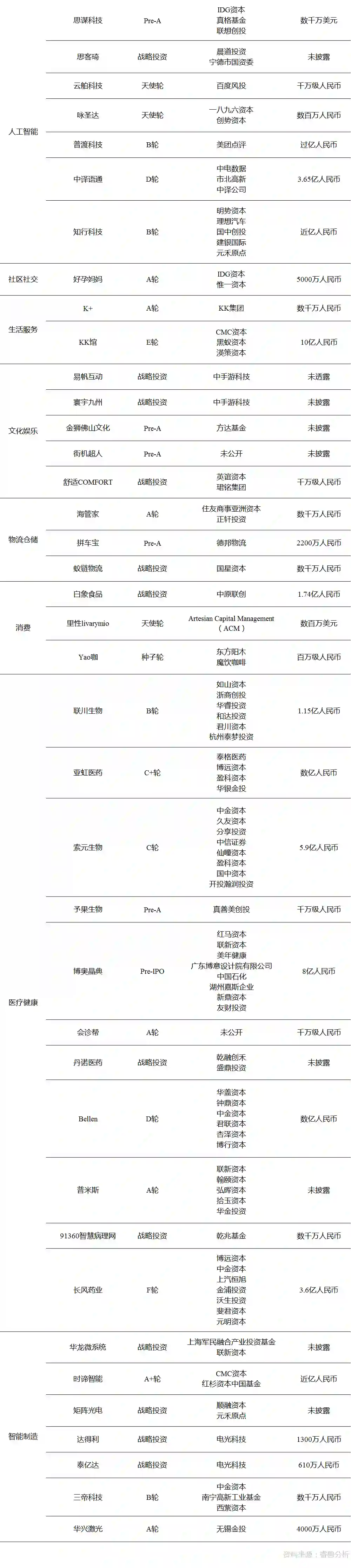 本周披露国内融资事件涉及18个行业领域,其中医疗健康11起,企业服务10起,人工智能、智能制造并列7起,文化娱乐、大数据并列5起。