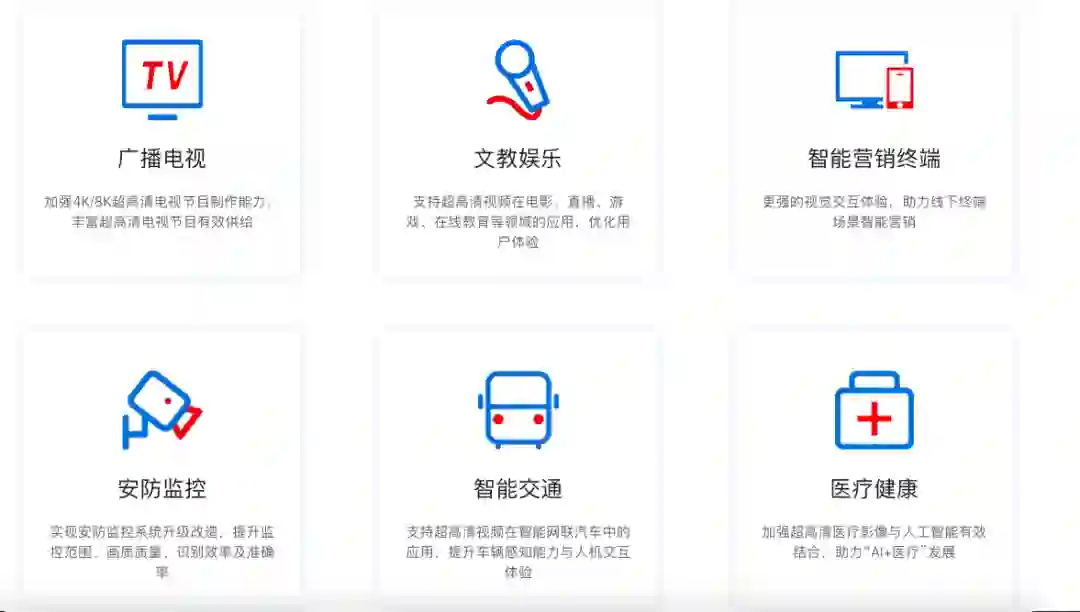 在超高清视频方面,随着5G加快商用,8K超高清视频有望成为5G时代第一个实现万亿级规模的市场。SMore Media解决方案基于思谋团队利用AI和视觉建模形成的高清图像视频处理、增强、理解的核心技术,致力于解决5G+8K全产业链流程中的“卡脖子”核心路段。此外,思谋还在研发用于8K超高清视频画质增强与理解的AI处理器,为客户提供软硬一体化解决方案,为电视电影、文教娱乐、智能终端营销、智能交通、医疗健康等行业提供生产力工具。