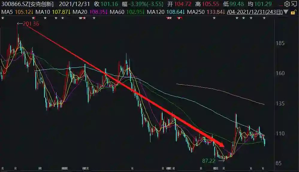 尽管便携储能产品为安克创新带来了新的增长点,但今年其二级市场的表现却不尽人意。2021年全年来看,安克创新的扣非净利润同比减少2.69%,这也是2014年以来的首次下降(注:2014年安克创新在新三板挂牌),且股价也从2021年最高点的201.36跌到了最低点的87.22,跌去了55%以上。