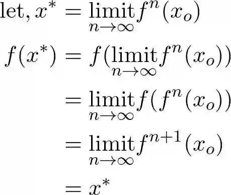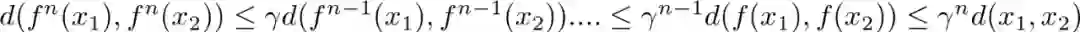 令(X, d)是一个完备的度量空间,函数f: X->X是一个压缩映射,则f具有唯一一个不动点 x*∈ X (即,f(x *)=x *) ,使得序列 f(f(f(…f(x))))收敛至x *。