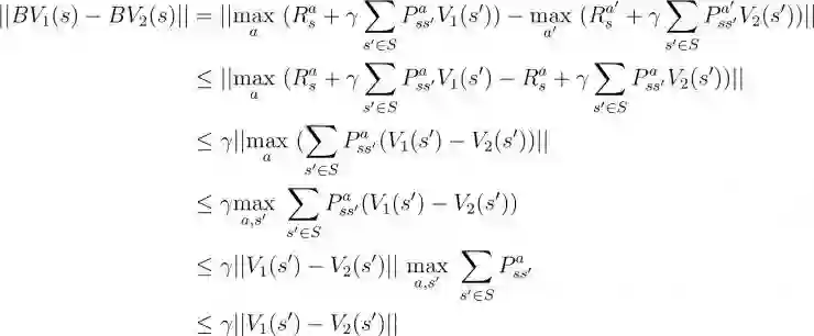 在上面的第四步中,我们通过在状态空间 s'上取最大值来移除L-无穷范数(回想一下在前面我们关于值函数的L-无穷范数的定义)