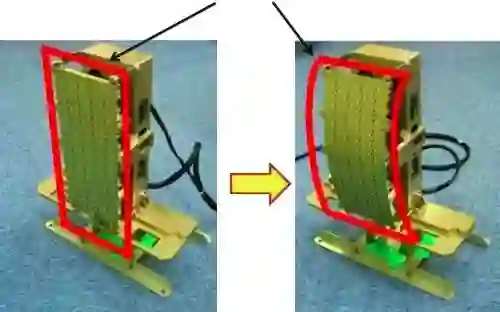 日本研制的这种天线上附有传感器,可以检测天线的弯曲曲率,通过计算曲率半径得出各个元件的坐标,然后自动调整各个元件的相位,形成指定方向的电磁波束。防卫技术本部在微波暗室中对弯曲状态的柔性共形阵天线的增益效果进行了验证,确认在指定方向上形成了电磁波束,证明柔性共形阵天线对电磁波进行修正是有效的。