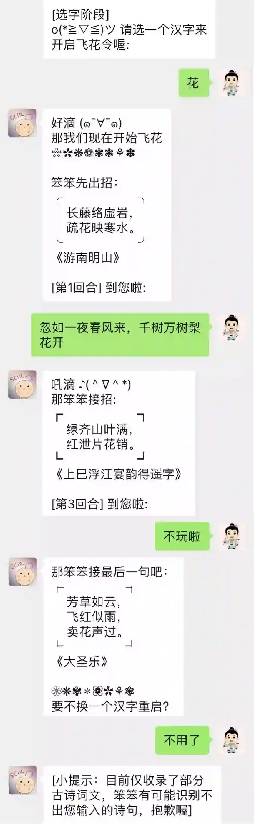 另外,如果输入【笨笨古诗繁体】,笨笨还能用繁体字陪您吟诗作对,是不是感觉更有古韵了。还有更多彩蛋等您发掘哦~