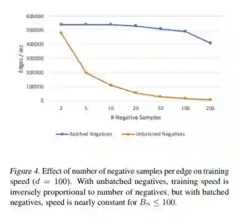 大多数图嵌入方法都使用负采样是跟内存(或网络)高度绑定,因为它需要 B*Bn*d 浮点数次数的内存访问,来执行复杂度为 O(B*Bn*d) 的浮点操作。事实上,Wu 等人报告说,训练速度”接近于逆线性函数 (负样本数量)。