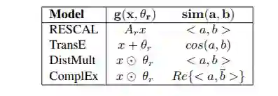 其中,θr 对应于特定关系转换运算的参数。使用因子分解评分函数生成一个嵌入,其中节点嵌入之间的(变换)相似性具有语义含义。