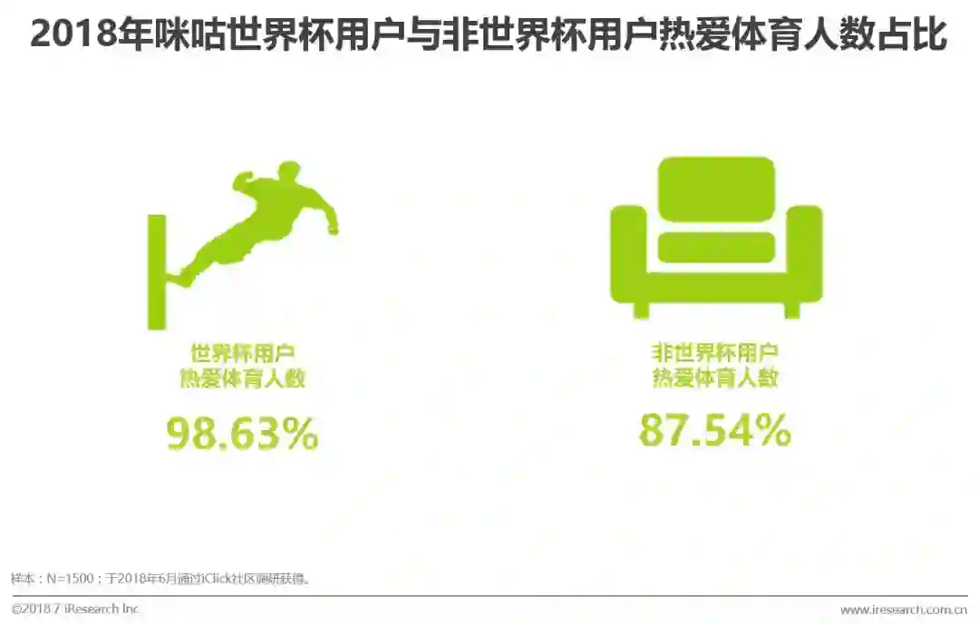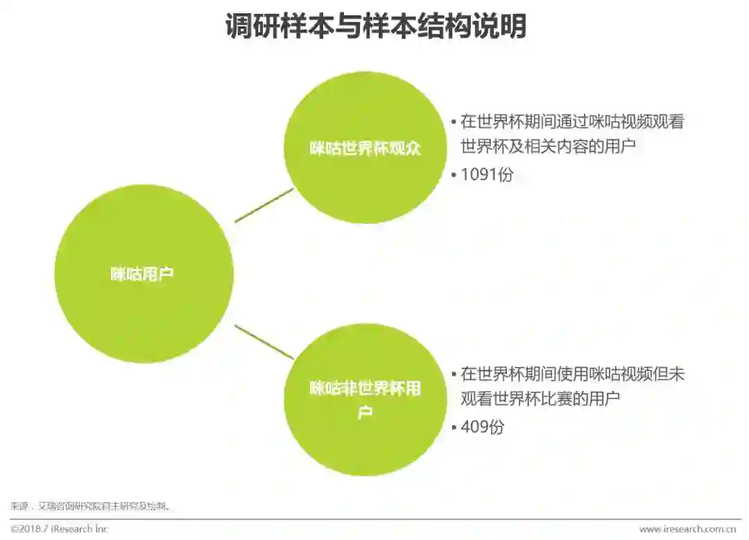 为了在更好的获取咪咕用户画像,同时也为了了解使用咪咕视频观看本届世界杯的观众在观赛方式以及观赛体验方面的转变,本报告通过艾瑞自主调研平台iclick社区投放在线调研问卷的方式进行调研,并结合咪咕大数据进行分析、总结。最终收获有效问卷1500份,其中咪咕世界杯观众1091份,咪咕非世界杯用户409份。