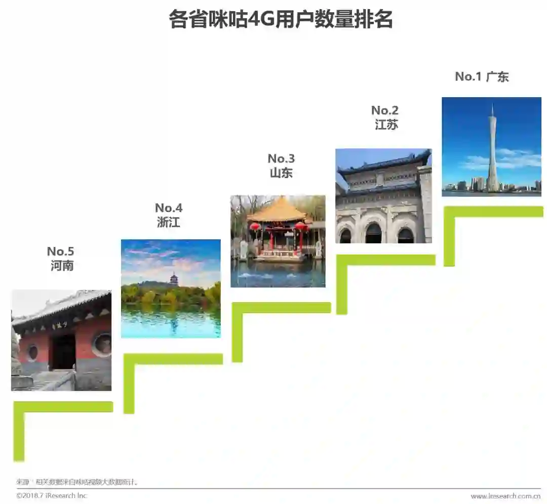 地域方面,经济发展较好的江浙和广东、作为人口大省的山东和河南位列咪咕4G用户数量前五,北京、上海身居前10。