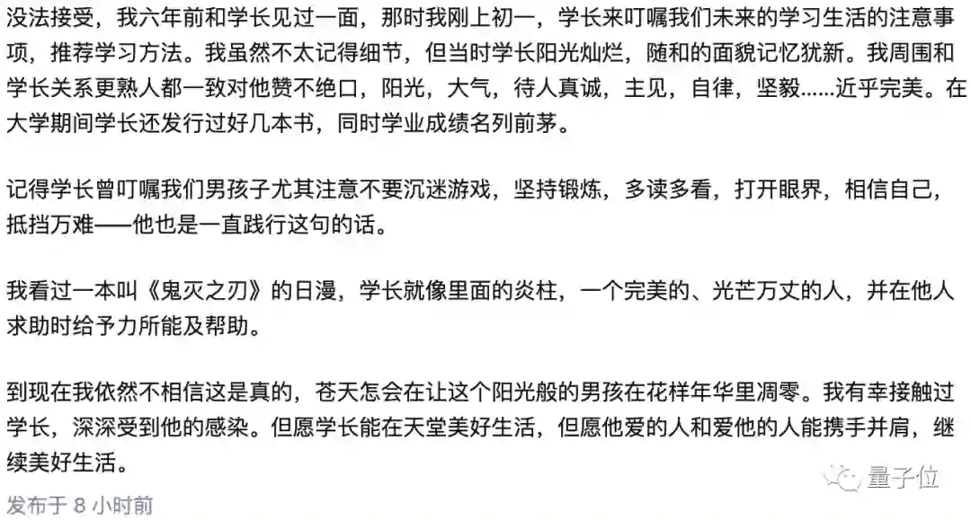 除去这些关系亲密、有直接联系的同学朋友们,也有仅仅几面之缘的后辈在知乎表示“无法接受”。