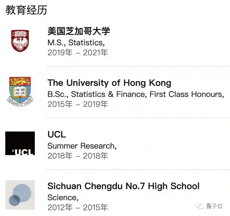 从成都七中以651分考入香港大学,再进入芝加哥大学攻读统计学硕士学位……