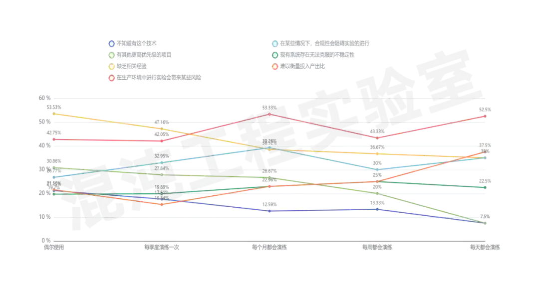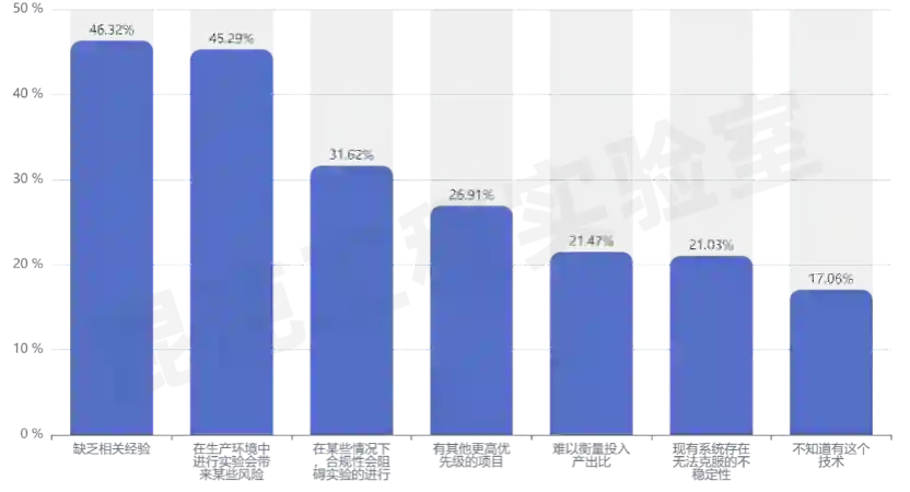 阻碍用户大规模、深度使用混沌工程的主要障碍是:缺乏相关经验以及担心故障注入对生产环境带来风险。