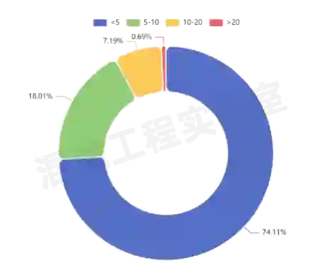 2)重大事故来源分布:对于每个月重大事故数量小于 5 的公司来说,代码错误和网络问题是造成重大事故的主要原因;对于每个月发生 5~10 个重大事故的企业来说,非数据库引起的内部依赖问题引发了 51.37% 的故障,配置错误引发了 43.72% 的重大事故;对于每个月发生 10~20 个重大事故的企业来说,非数据库引起的内部依赖问题同样以 47.95% 的比例显著高于其他故障类型,配置错误以 41.1% 的比例位居第二。