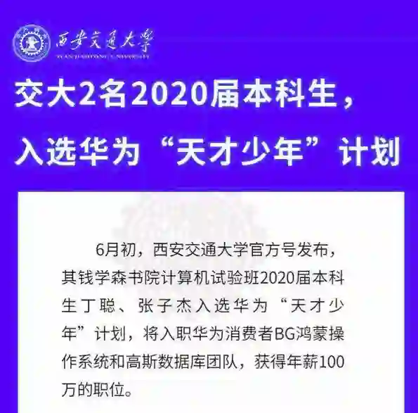 据公开报道,从去年 12 月至今,单是华中科技大学便有三位天才少年入围这项计划。华科官方也对外确认了这一消息,入选的天才少年分别是左鹏飞、张霁和姚婷。其中,左鹏飞是华科计算机科学与技术专业 2014 级直博研究生,主要研究领域是内存系统和架构、存储系统和系统安全,他拿到了华为天才少年计划的薪资最高档(182-201 万人民币 / 年);张霁同样拿到了最高档薪资,主要研究方向是 AI for System;姚婷目前是华科计算机系统结构专业直博五年级,研究方向为新型存储介质(NVM/SMR)、数据库和键值存储系统。