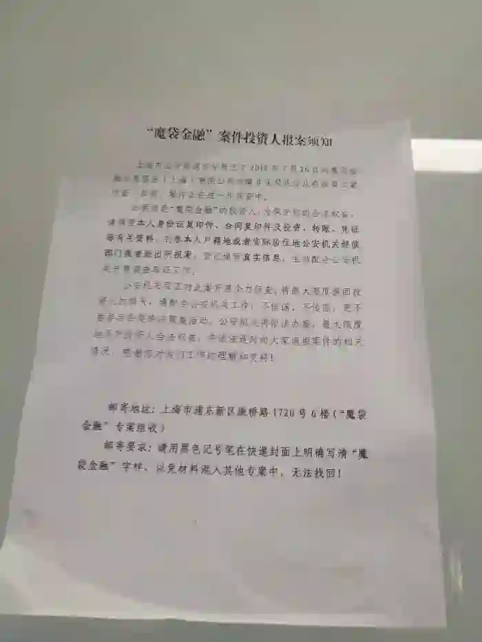 8月14日,21世纪经济报道记者来到上海市公安局浦东分局经侦支队,在现场可以看到,来自多家理财平台的出借人正在报案中,也有部分平台报案须知贴出,不过未见点牛金融相关公告。