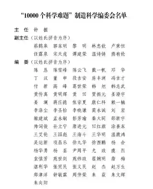 条目评审过程中我们形成一个共识:科学难题是当前学术界基本达成共识的未解决的问题,但是对难题的立意和分析客观上存在的不同学术见解,《10000 个科学难题·制造科学卷》不可能一一述及,我们尊重编撰者的学术观点,同时也努力不给读者留下“此乃唯一”的思维约束,我们期望《10000 个科学难题·制造科学卷》给予读者的是对“制造如何创造物质产品社会”的好奇心的激励、探索的提示和智慧思考的萌生,也希望读者特别是青年读者能以此初心阅读《10000 个科学难题·制造科学卷》。
