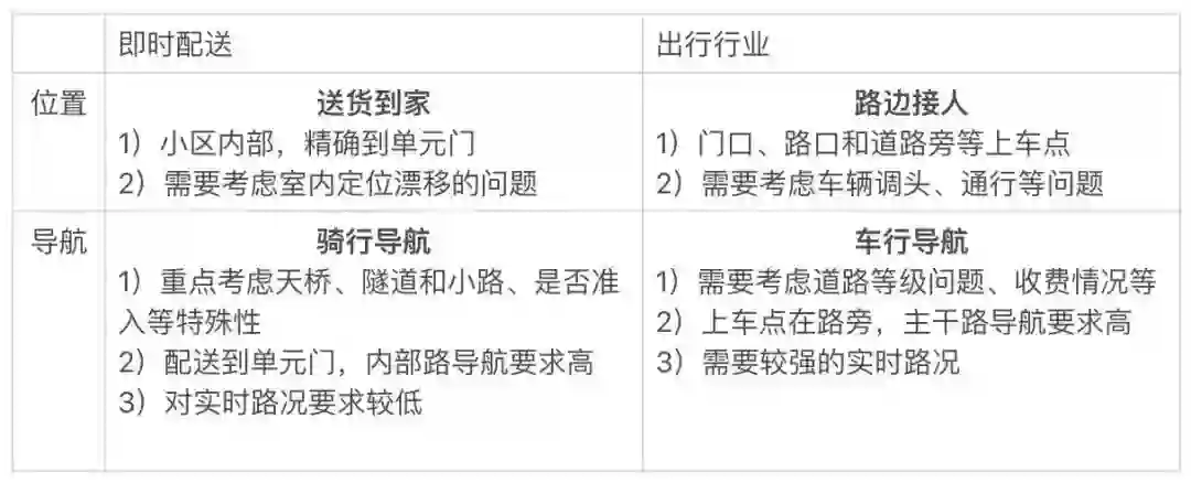 即时配送 VS 出行行业:地图厂商在车载导航的优势和积累,在即时配送场景较难发挥
