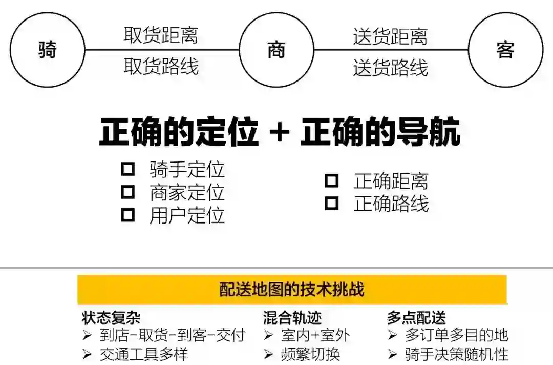 从这两方面对比可以看到,在即时配送业务中,骑行地图的重要性非常之高,同时很多问题确实非常具有行业特色,通过驾车地图的技术无法很有效的解决。这样就需要建设一套即时配送业务地图的解决方案。
